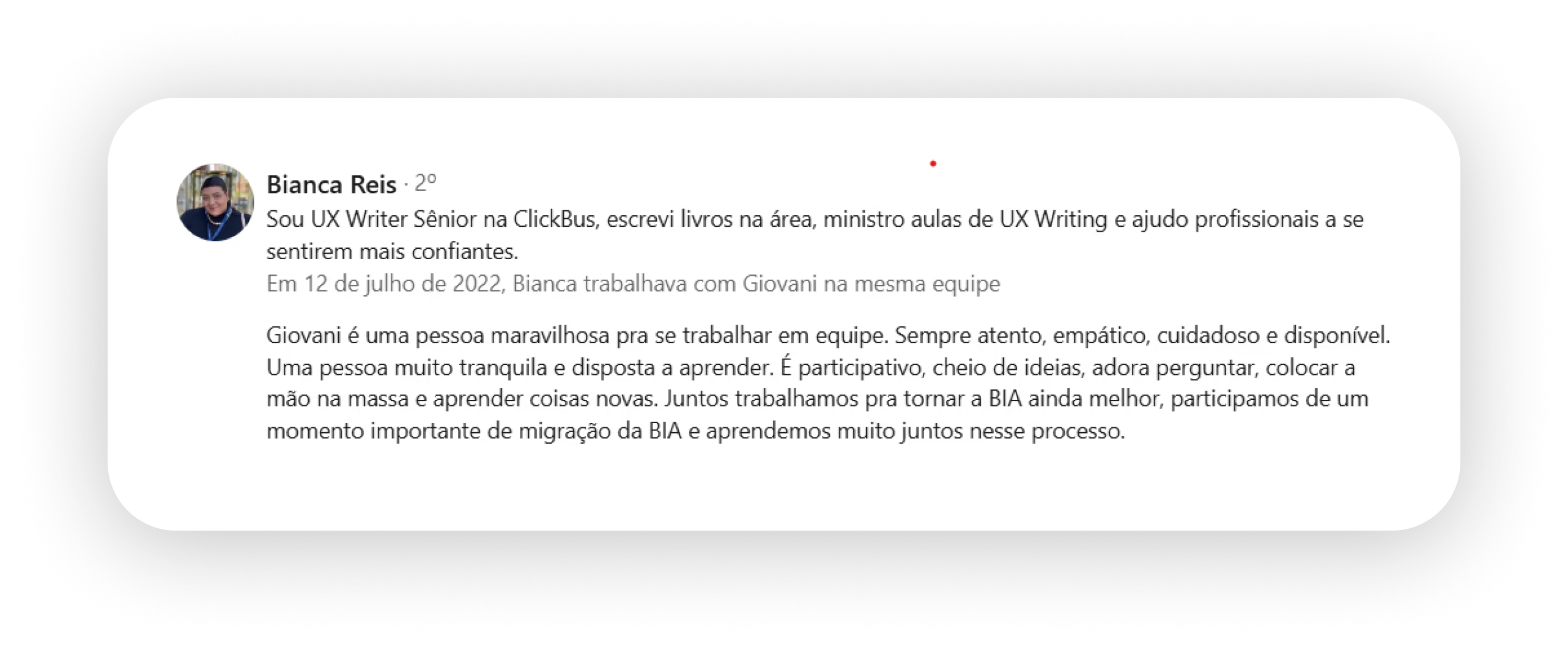Sou UX Writer e também Copywriter, pós-graduado em User Experience (UX) e design de experiências, com passagem pelo Banco Bradesco, Bradesco Seguros, Getnet e outros grandes players do mercado.